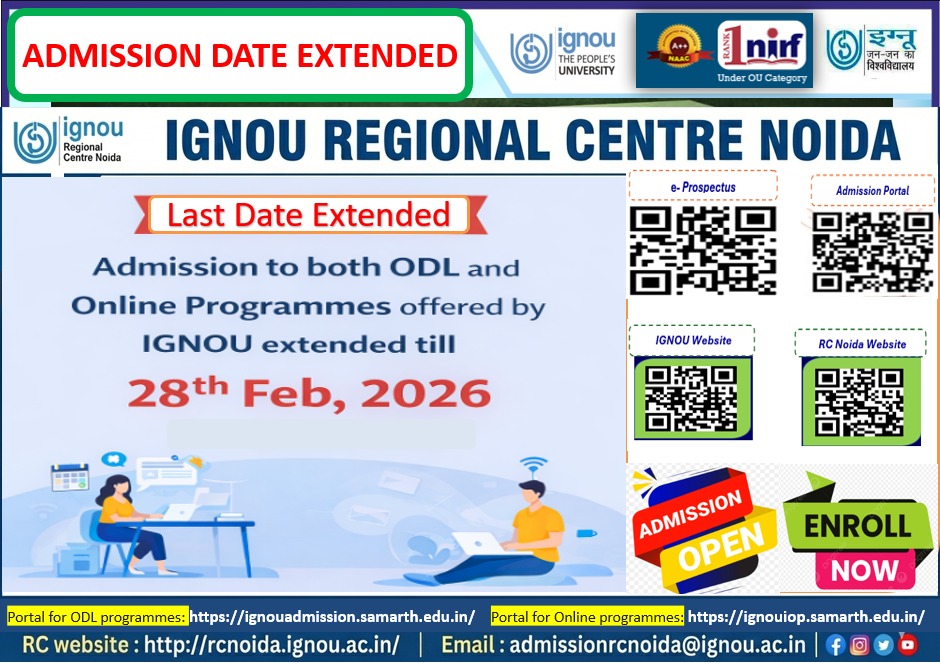 The deadline to Admission to both ODL and Online Programmes offered by IGNOU extended till 28th Feb, 2026.