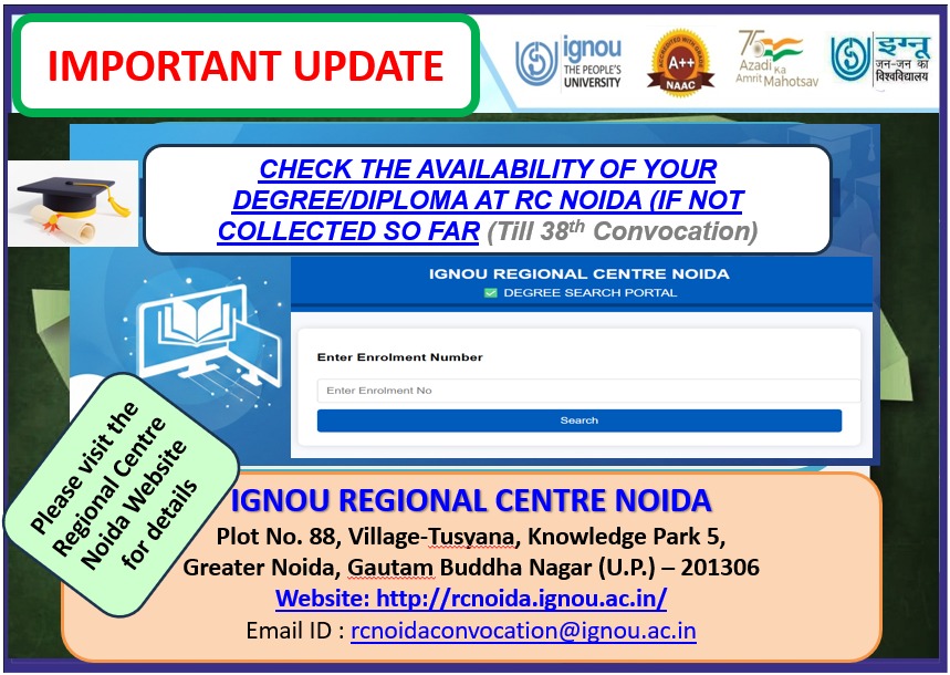 CHECK THE AVAILABILITY OF YOUR DEGREE/DIPLOMA AT RC NOIDA (IF NOT COLLECTED SO FAR